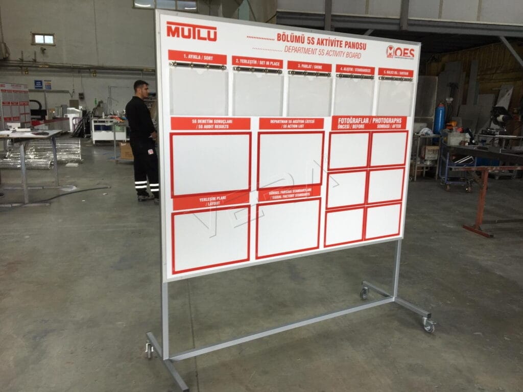 Firmamız, işletmelerin ihtiyaçlarına uygun olarak 5S pano imalatı gerçekleştirmektedir. Kullanım alanına, departman yapısına ve takip edilmek istenen kriterlere göre istenilen ölçü ve özelliklerde 5S panoları üretilmektedir. Dayanıklı malzeme yapısı, okunabilir tasarım ve fonksiyonel kullanım özellikleri ile 5S panoları, kalite yönetim sistemlerinin vazgeçilmez bir parçasıdır.